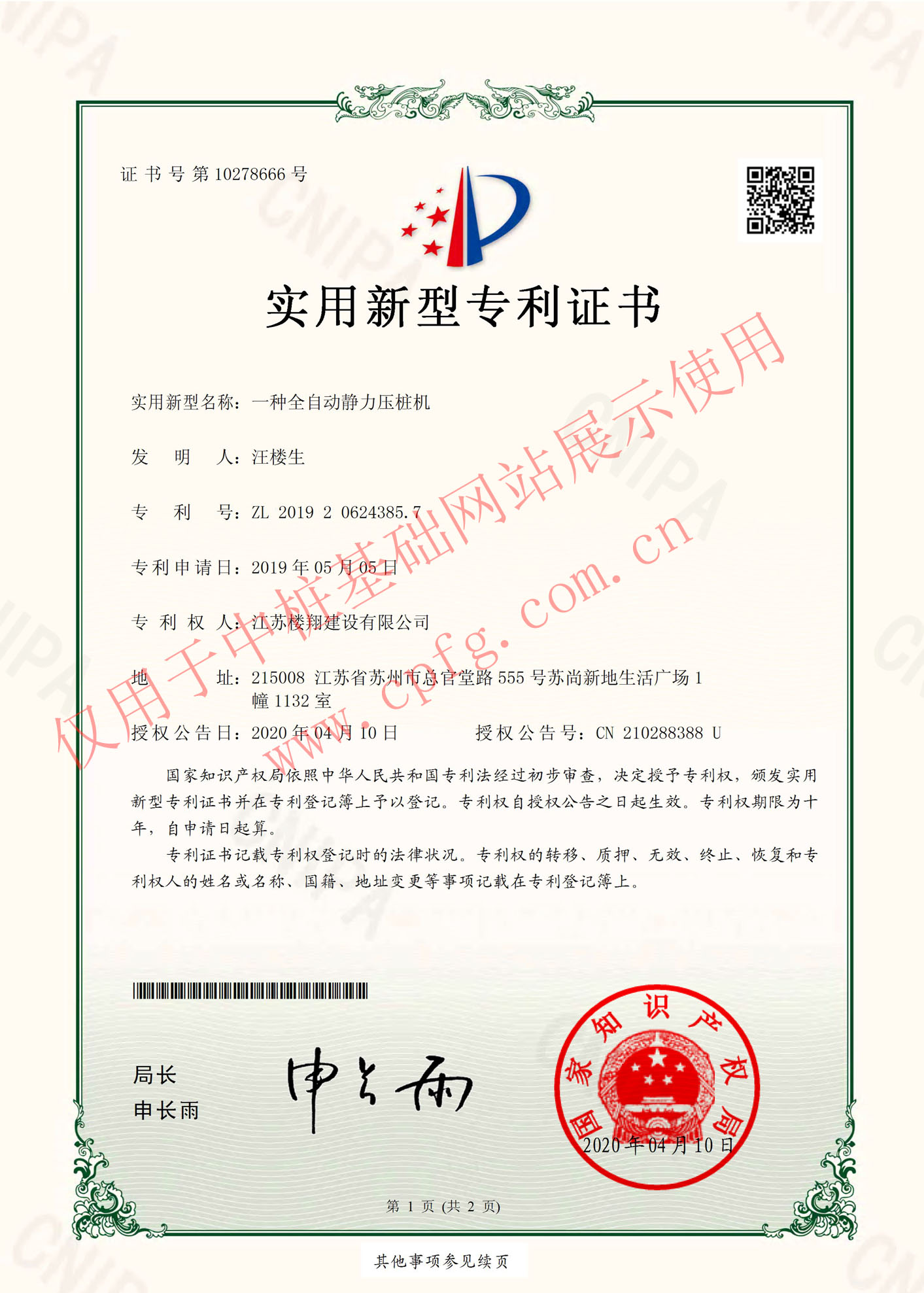 一种预制桩吊装焊接一体装置实用新型专利证书